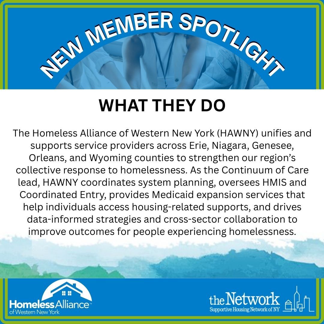 The Homeless Alliance of Western New York brings deep regional expertise to the Network. The Homeless Alliance has been a cornerstone of the Western New York homelessness response system for more than two decades and serves as the lead Continuum of Care (COC) agency for Erie, Niagara, Orleans, Genesee, and Wyoming Counties.